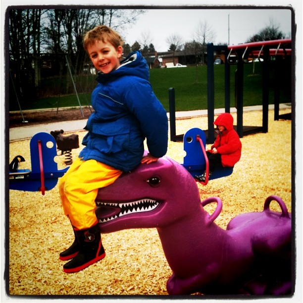 O.K., that’s actually Blizzie (not Pengui) on the teeter-totter with K, but it’s still a cute photo