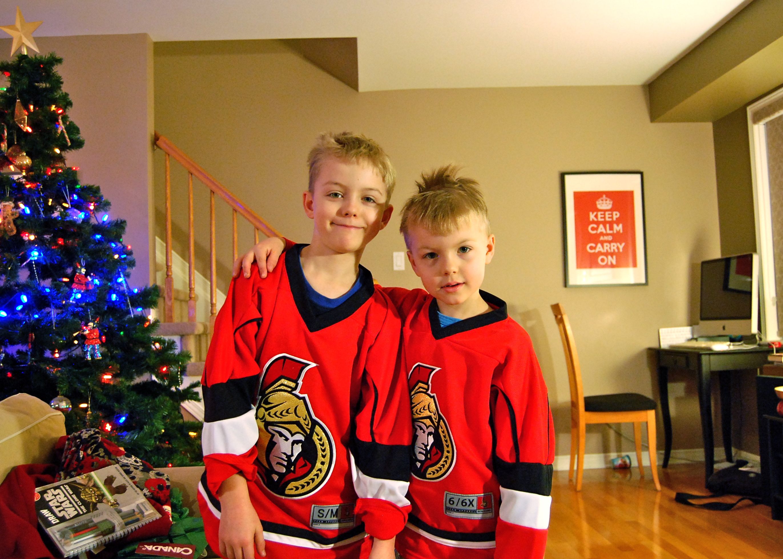 The boys seemed happy with their matching Sens jersey. They also got tickets to the Sens game on January 8th – it will be a nice way to celebrate the last day of Christmas vacation.
