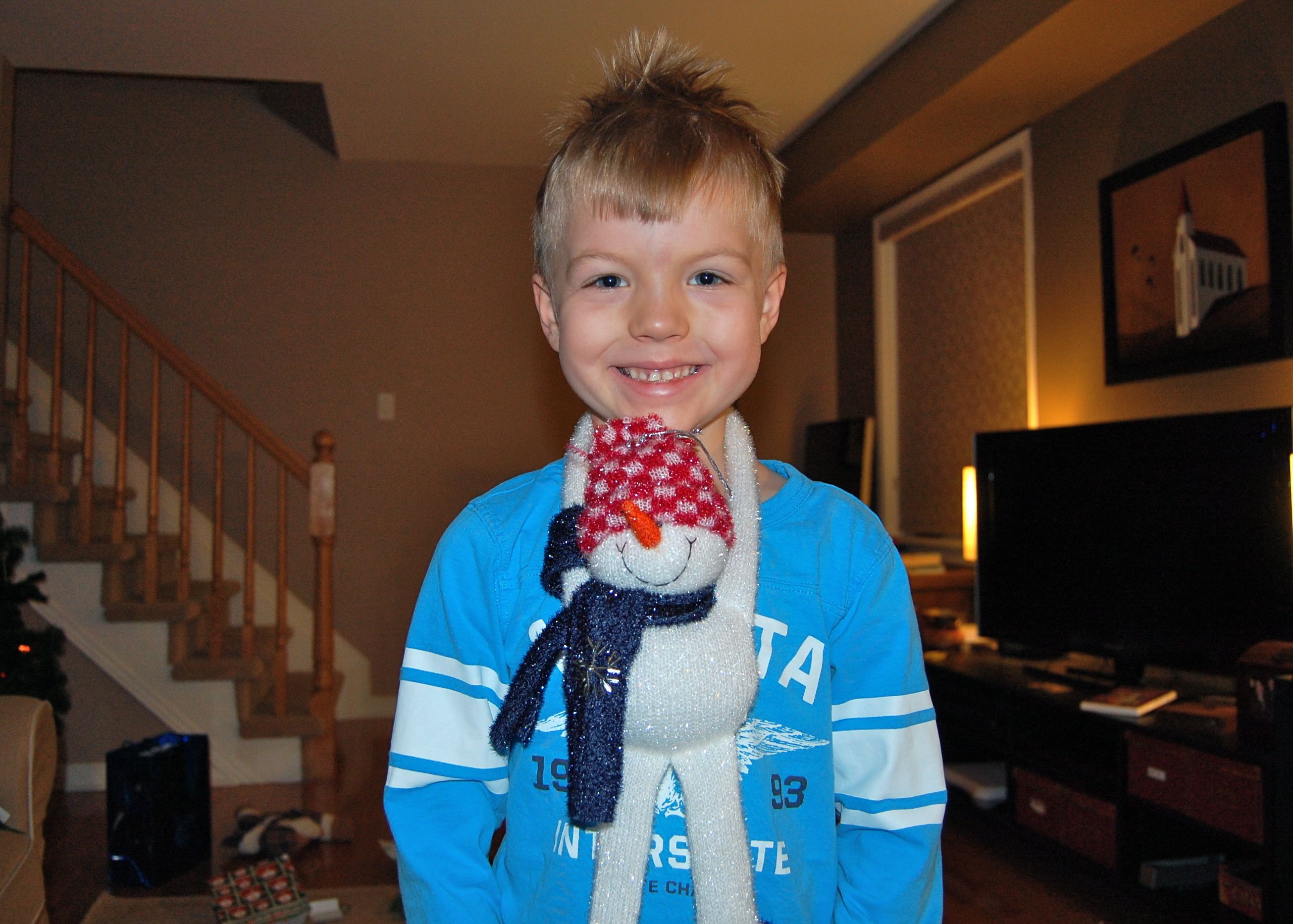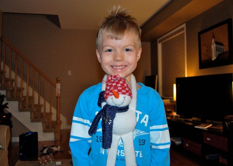 K showing off the snowman he got from his brother, courtesy of the school’s Christmas shop.
