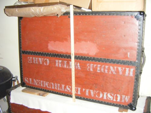 I got it and the massive original packing cases (see photos) from an original member of the orchestra back in the 1960s when I was a student of Jim Salmon at the University of Michigan. His name was Carl Bailey, an undertaker in Huntington, Indiana. He, his sister, his parents, and I believe some cousins or aunts and uncles were all in the group.