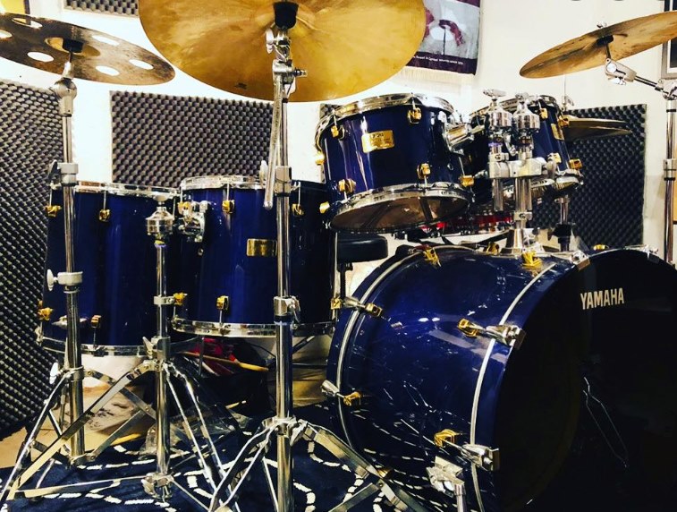Since Yamaha didn’t make the Deep Blue finish since the 90s they asked me to take photos of the kit for them to see the color and recreate it for the sign. snare. Yamaha liked the finish so much that they brought it to their maple and birch absolute kits for a short while and then to the Recording Custom in 2012. I have one of those kits as well, check my profile cover pic to see it. The Deep Blue is a gorgeous finish. It can appear almost black to getting shades of purple when under stage lights.